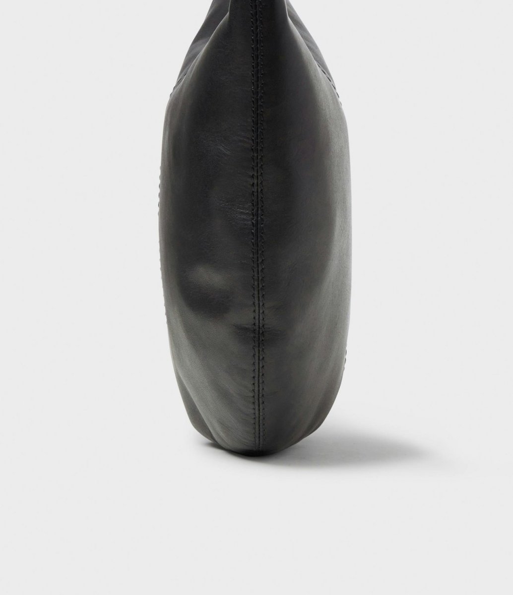 Tillverkad i slätt full grain koläder, certifierat av Leather Working Group. Invändigt finns en öppen ficka samt en ficka med dragkedja. Insidan är fodrad i polyester. Väskan försluts med metalldragkedja på toppen. Justerbar axelrem med en längd om 88–125 cm. Hårdvara i blank nickelfärgad metall. Präglad Saddler-logo på axelremmens end tip.