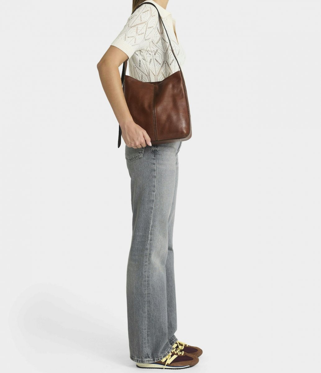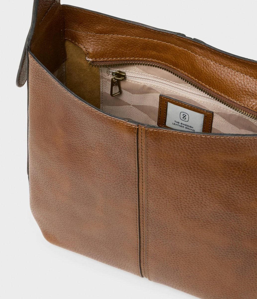 Toteväska Molly från Saddler. En stilren tote i mjukt full grain ko-läder med naturlig struktur och en ofodrad insida som ger en direkt kontakt med det exklusiva materialet. Väskan har ett rent och avskalat uttryck som lyfts av en lång ändtipp – en subtil men effektfull detalj som adderar stilkänsla. Insidan rymmer både en öppen ficka och en dragkedjeficka för dina viktigaste tillhörigheter. Väskan försluts med en elegant metalldragkedja och bärs bekvämt med en justerbar axelrem i läder om min. 59 cm och max. vilket gör att du enkelt kan anpassa hur du vill bära den – över axeln eller crossbody. Hårdvara i blank silverfärgad metall fulländar den sofistikerade designen. Lädret i den här produkten är av högsta kvalitet och har behandlats i garveri certifierat av Leather Working Group.
