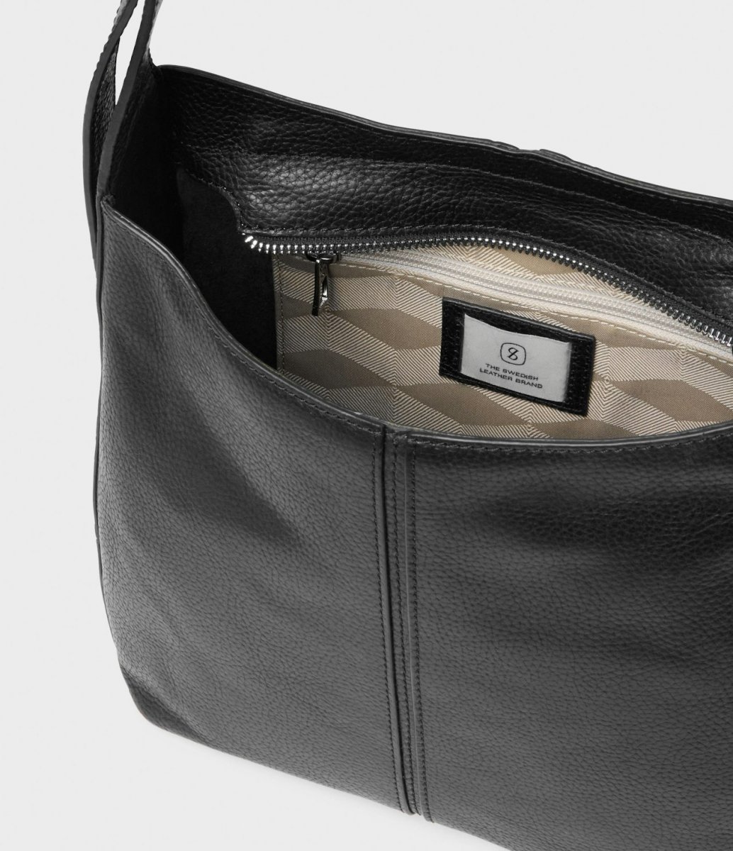Toteväska Molly från Saddler. En stilren tote i mjukt full grain ko-läder med naturlig struktur och en ofodrad insida som ger en direkt kontakt med det exklusiva materialet. Väskan har ett rent och avskalat uttryck som lyfts av en lång ändtipp – en subtil men effektfull detalj som adderar stilkänsla. Insidan rymmer både en öppen ficka och en dragkedjeficka för dina viktigaste tillhörigheter. Väskan försluts med en elegant metalldragkedja och bärs bekvämt med en justerbar axelrem i läder om min. 59 cm och max. vilket gör att du enkelt kan anpassa hur du vill bära den – över axeln eller crossbody. Hårdvara i blank silverfärgad metall fulländar den sofistikerade designen. Lädret i den här produkten är av högsta kvalitet och har behandlats i garveri certifierat av Leather Working Group.